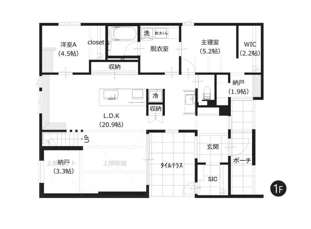 1階に主寝室を設けることで、将来的には平屋のように1階だけで暮らしが完結する住まいに。移動もスムーズになり、毎日の暮らしをより快適にします。