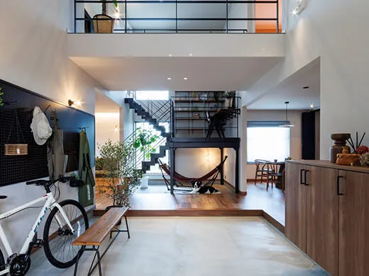約17帖の広々としたホールは、セカンドリビングとしてはもちろん、アートや植物を飾るギャラリースペース、室内干しスペースとしても活躍。暮らしに合わせて多目的に使える空間です。