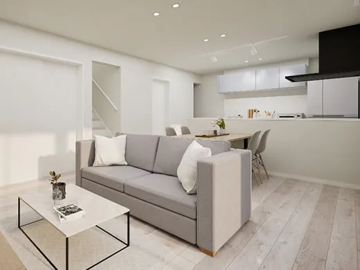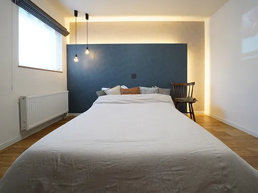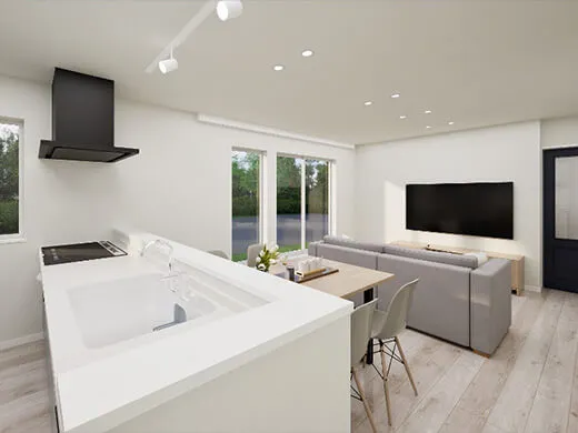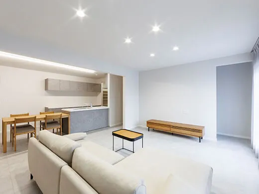 通常よりも天井高を確保したハイスタッド設計で、開放感を存分に味わえるLDK。間接照明は、空間をやわらかく彩ります。また、Bluetoothスピーカー付きのダウンライトを設置し、お気に入りの音楽を流しながら、癒しのひとときをお過ごしいただけます。
