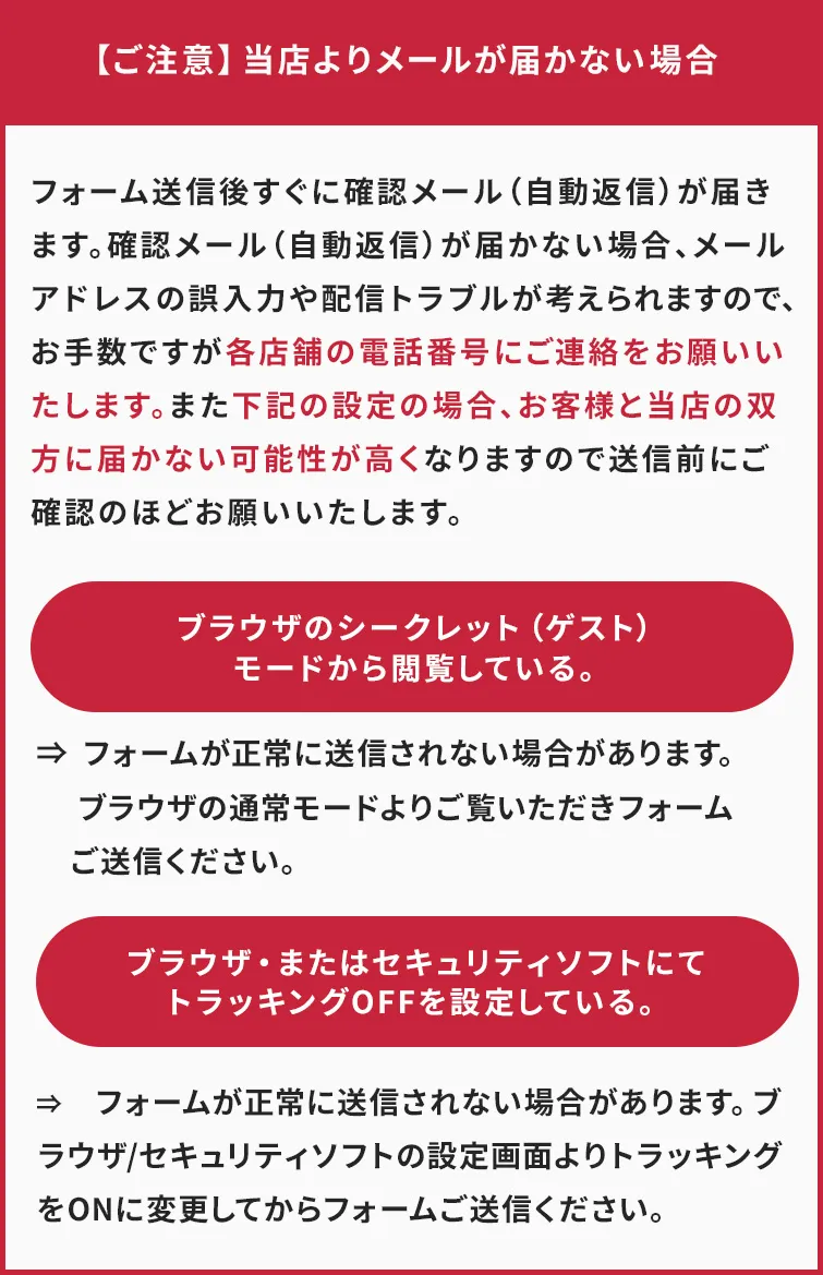 ※毎週水・木曜日は定休日とさせていただきます。 ※当社からの予約確認、確定のご連絡を以って受付完了とさせて頂きます。