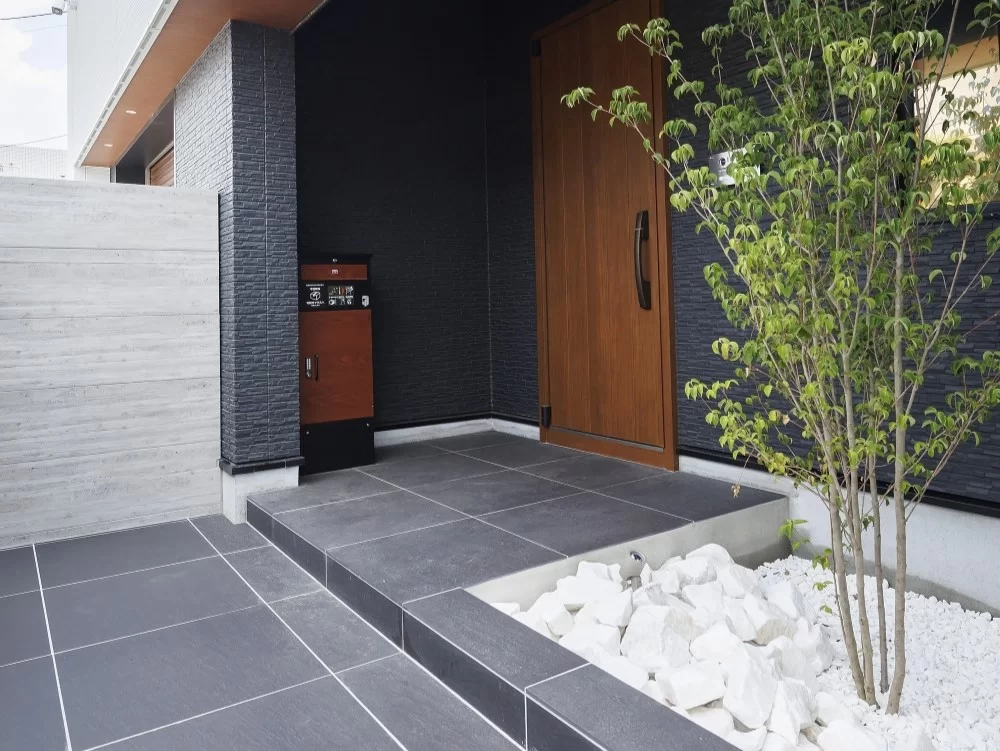 玄関に坪庭を設けると、扉を開けた瞬間に緑が目に飛び込み、訪問者に洗練された印象を与えます。また、限られた玄関スペースに奥行きが生まれ、明るく開放的な空間になります。