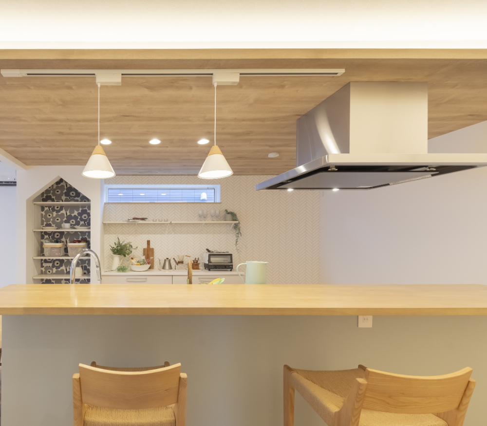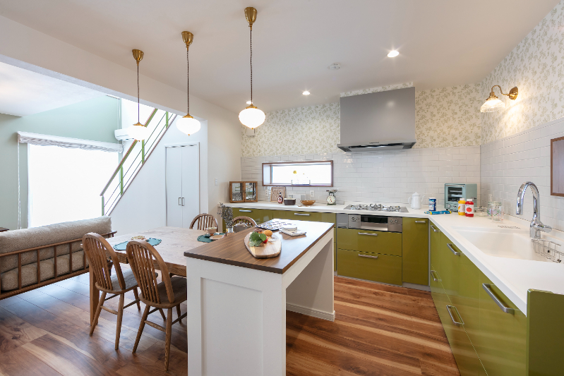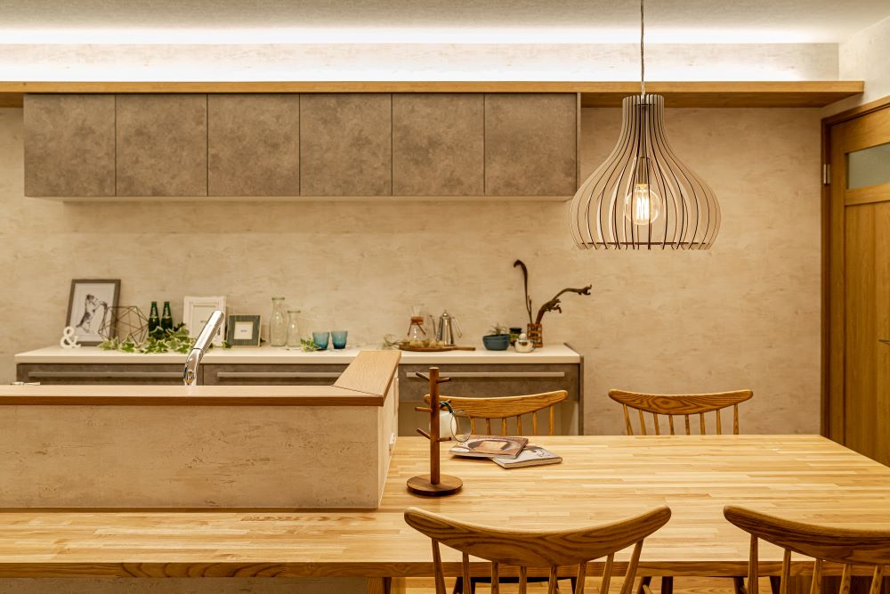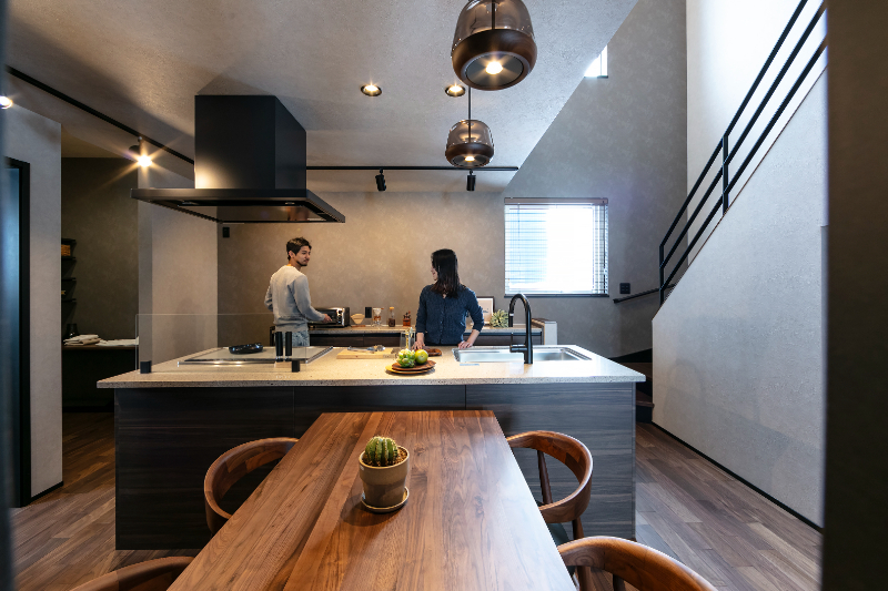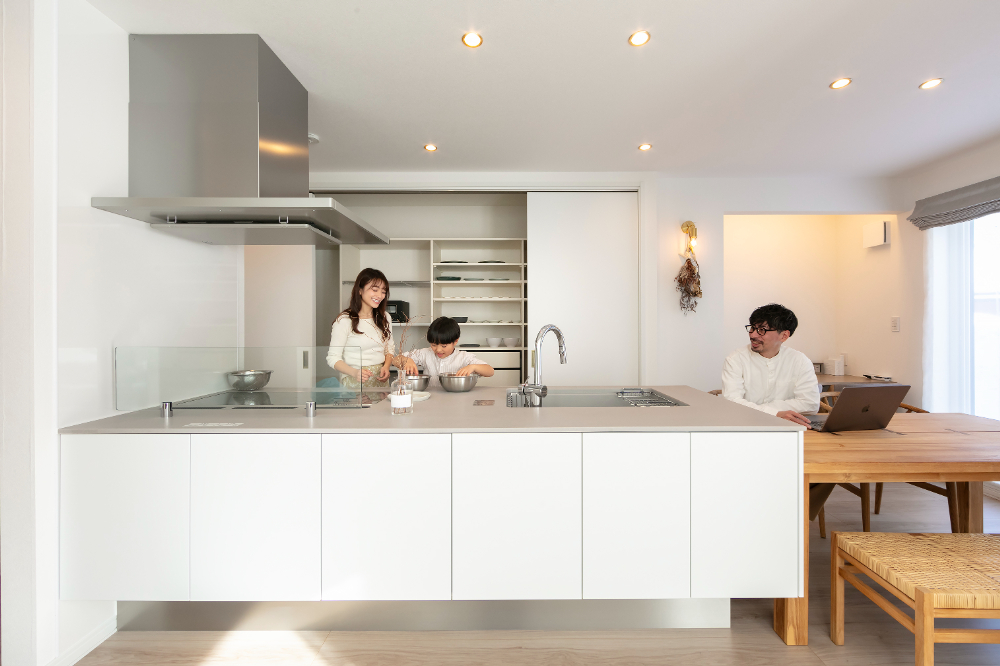 キッチンで作業する人がダイニング側を向く対面式キッチンは、コミュニケーションが取りやすい人気のスタイルです。