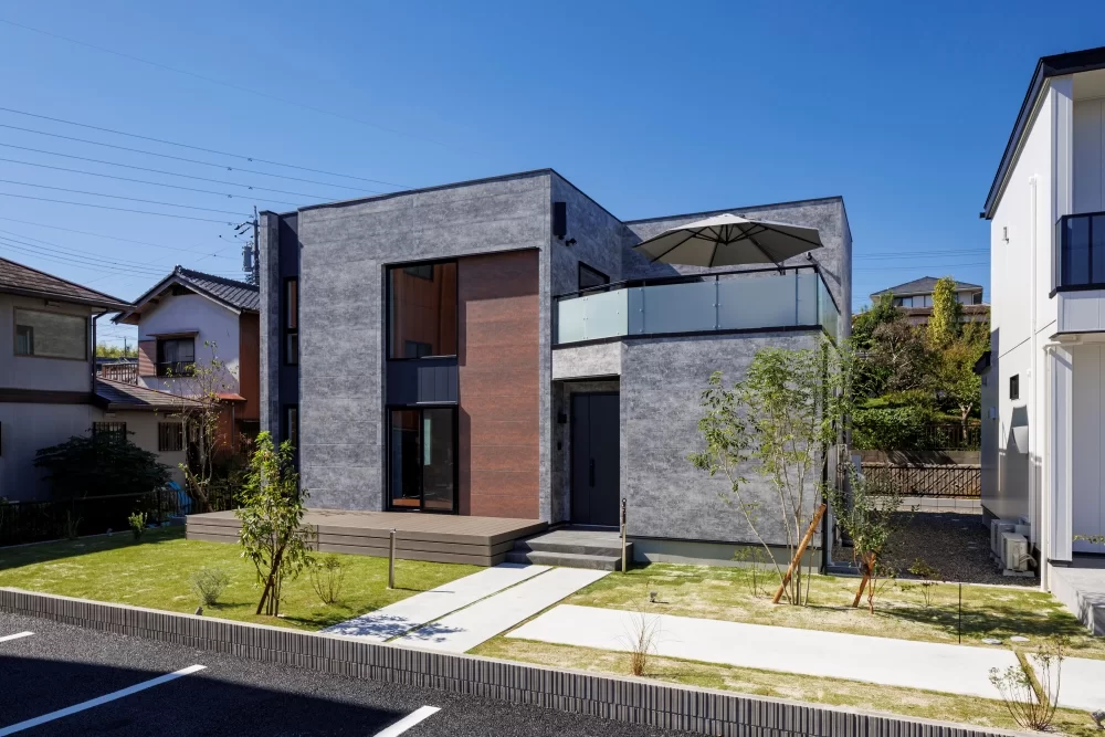 ウッドサイディングや塗り壁など、自然素材を活かした温かみのあるデザイン。庭の緑との相性も抜群です。