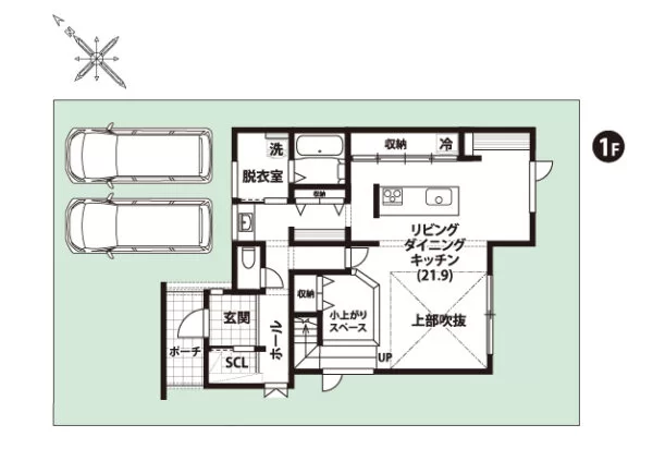 限られた面積を最大限に活用し、コンパクトな家事動線を実現した間取りが特徴です。