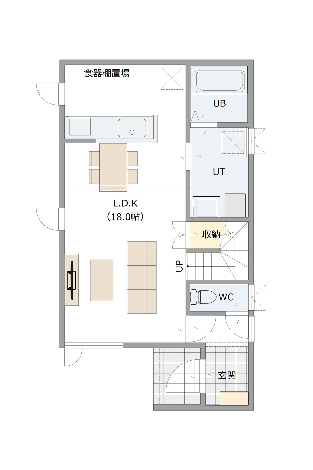 風の入り口と出口になる窓を対角線上に配置することで、家全体に心地よい風が通り抜けます。
