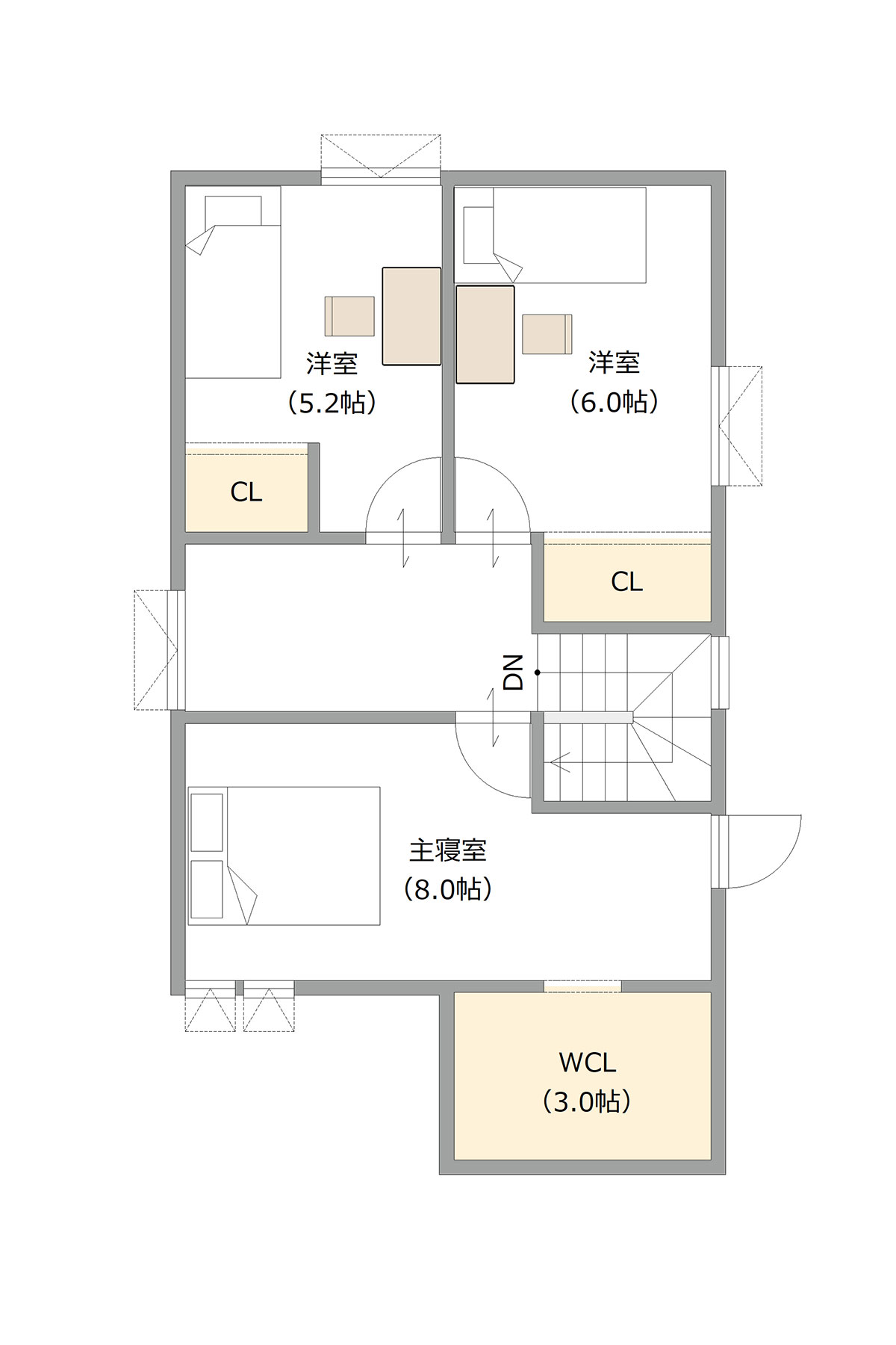 メリット: 狭い土地でも延床面積を確保しやすい。プライベート空間(寝室)とパブリック空間(LDK)を分けやすい。