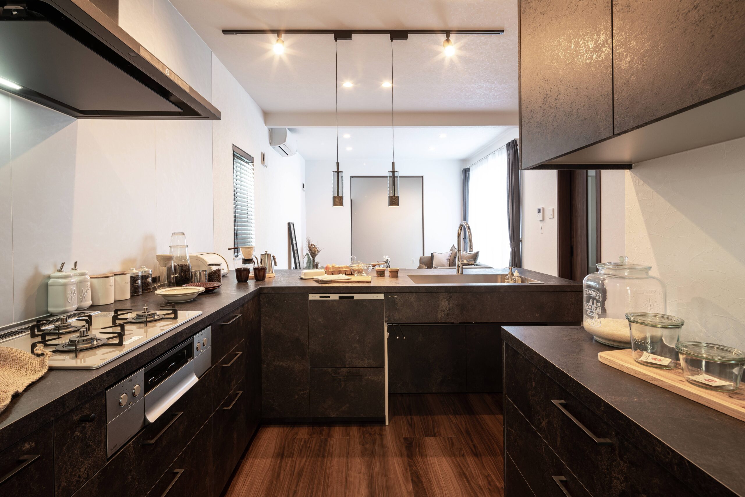 | L型 | ・動線が短く作業効率が良い ・作業スペースを広く取れる ・コーナーを有効活用できる | ・コーナー部分がデッドスペースになりやすい ・設置に広いスペースが必要 ・I型よりコストが高い | ・料理好きで作業スペースを重視する人 ・比較的広めのキッチン空間が取れる家 |