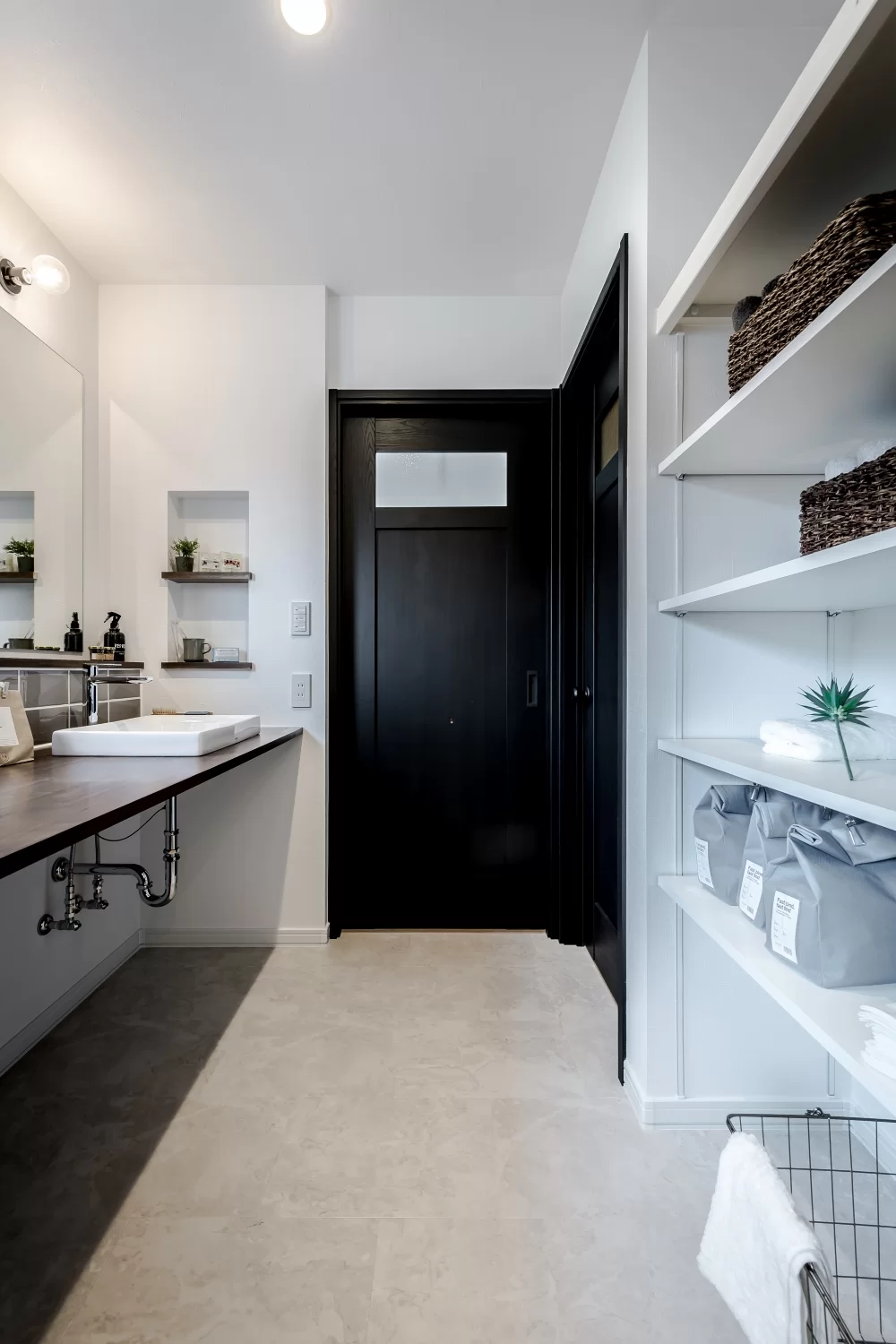 かなりゆとりのある空間です。大型のファミリークローゼットを併設したり、アイロンがけ専用のスペースを設けたり、スロップシンクを設置したりと、理想の機能をすべて詰め込むことが可能になります。