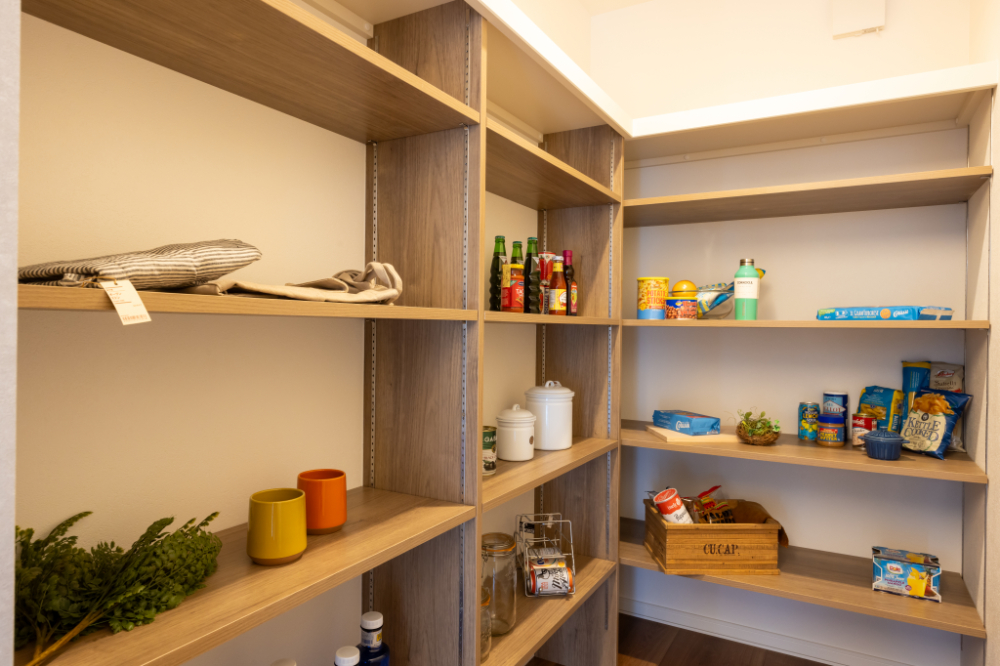 - パントリーは食品や日用品をストックし、キッチンをすっきりさせるための多目的収納スペース。