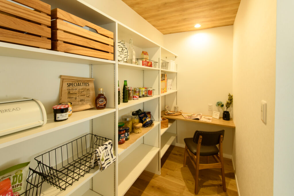 - パントリーは食品や日用品をストックし、キッチンをすっきりさせるための多目的収納スペース。
