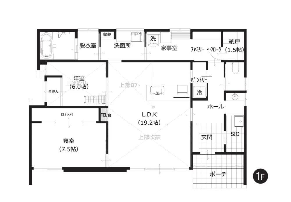 例えば、「キッチン→パントリー→洗面所→ファミリークローゼット→キッチン」とつながる間取りなら、料理をしながら洗濯をしたり、乾いた服をすぐにしまったりと、家事を効率的にこなせます。