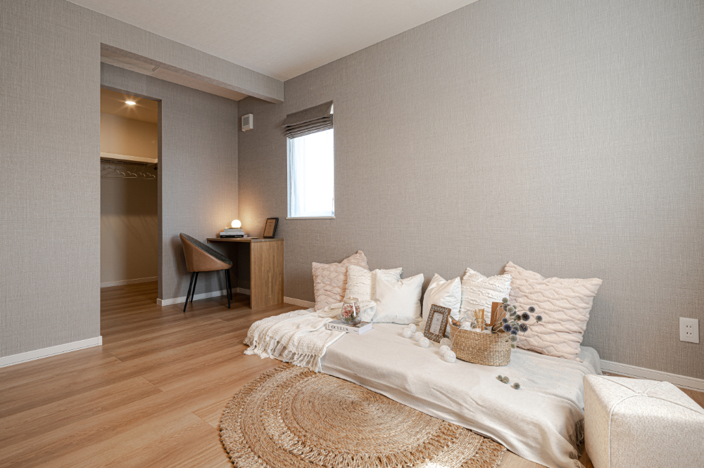 ベッドを置く「睡眠ゾーン」と、ソファやデスクを置く「リラックス・作業ゾーン」をラグやシェルフで区切ることで、空間にメリハリが生まれます。 - ウォークインクローゼットを作る
