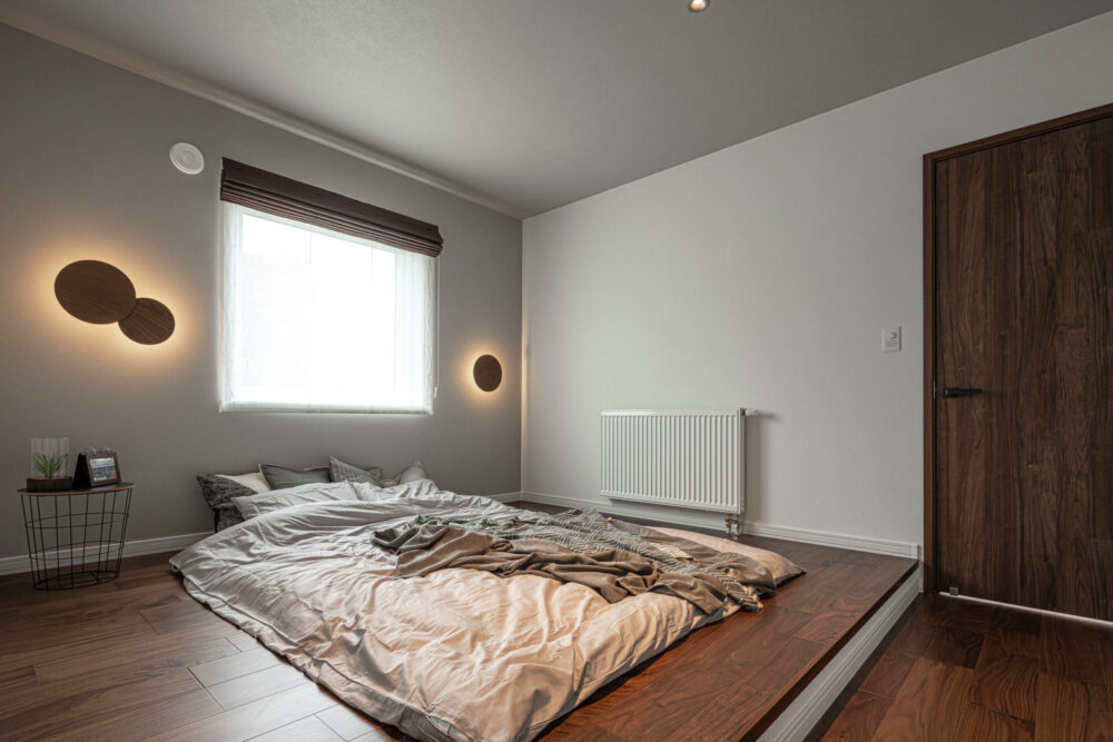 ベッドのヘッドボード側を壁につけるのが基本の配置です。安心感が得られ、落ち着いて眠ることができます。 - 窓との距離を考える