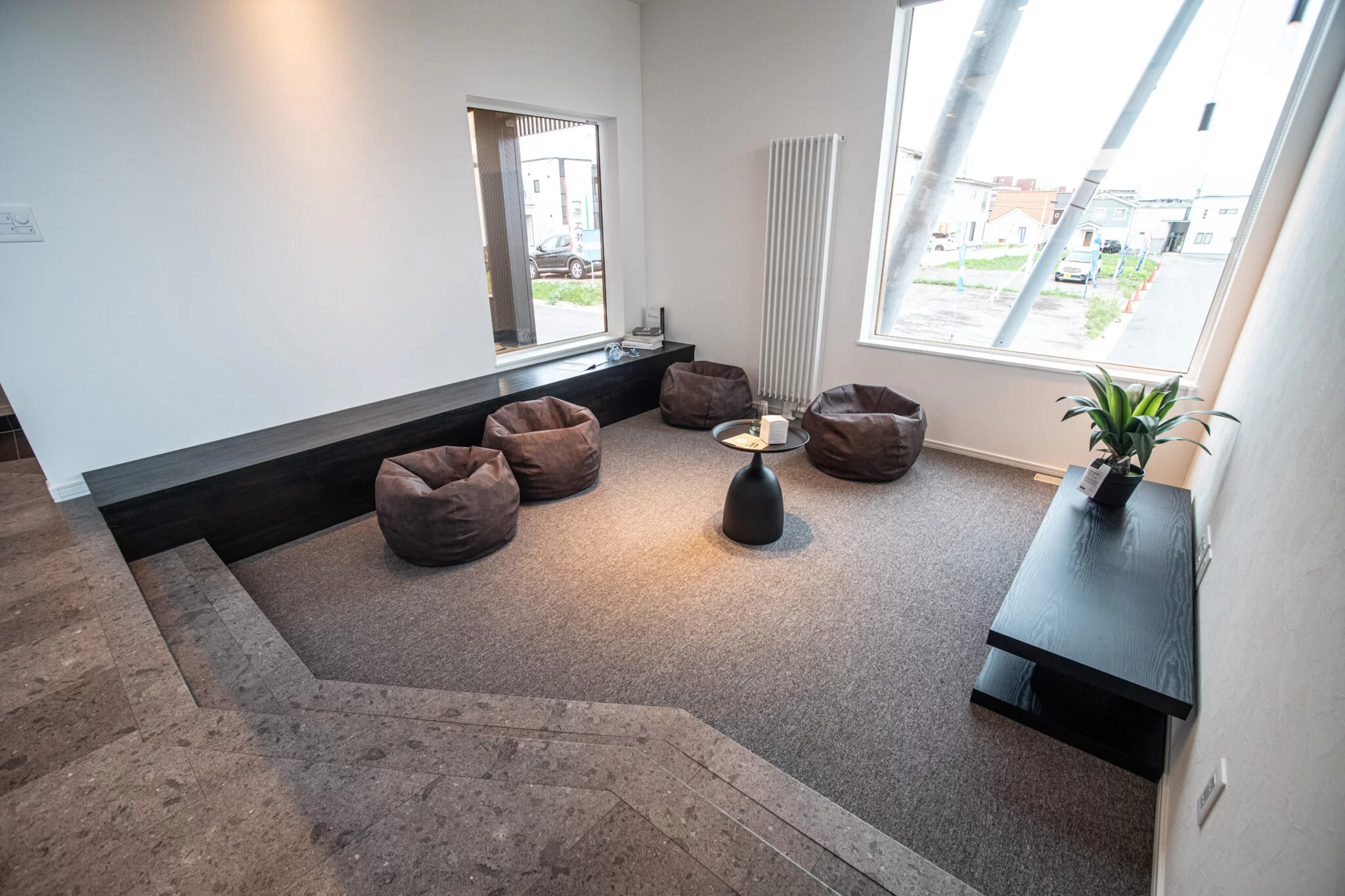 リビングなど、部屋の一部の床面を周囲より一段低くする設計手法です。床を下げることで、その部分だけ相対的に天井が高くなります。空間に視覚的な変化が生まれるだけでなく、ソファを置くと「おこもり感」のある特別な居場所を演出できます。
