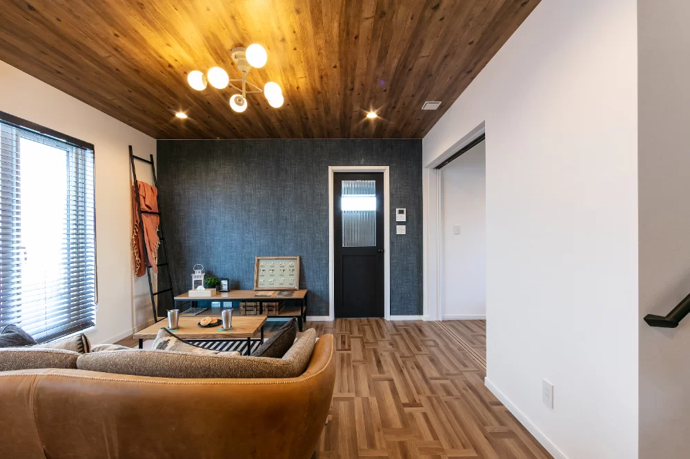 通常は天井裏に隠してしまう構造材である「梁(はり)」を、あえてインテリアとして見せるデザインです。天井に力強いアクセントが加わり、視線が上に誘導されることで天井が高く感じられます。木の温もりを感じるナチュラルな空間や、カフェのようなインダストリアルな雰囲気にぴったりです。