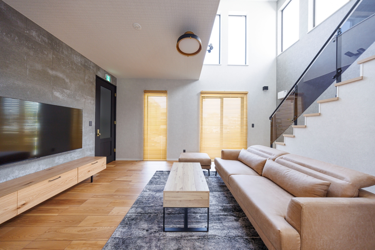 リビングはオープン階段をもうけた吹抜けを採用しています。一部を吹抜けにすることで家全体が広く感じられ、明るく居心地のいい空間となっています。