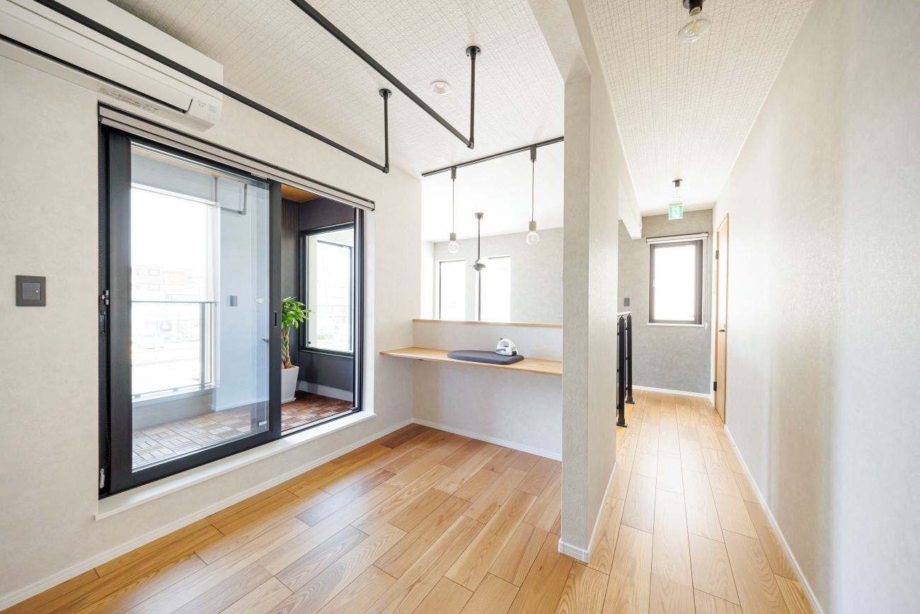 リビングとつながる和室は小上がりになっていて、ちょっとした昼寝や来客時の宿泊スペースなど、暮らしに合わせて利用できます。キッチンから見渡せるので、子どもの遊び場としても安心です。