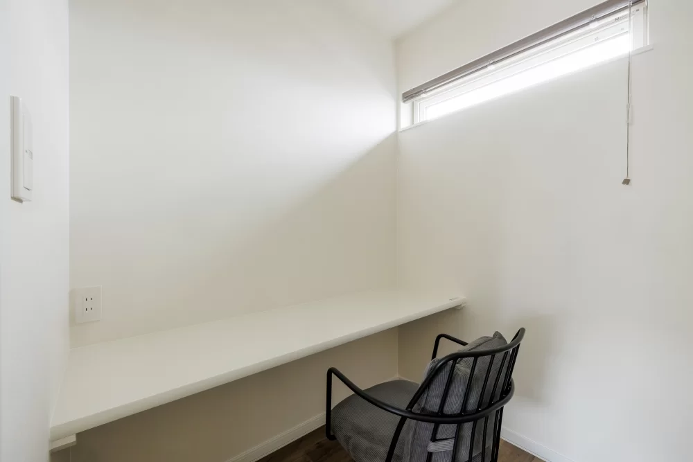 2階の書斎は、仕事や趣味の空間としてだけでなく、納戸としても活用可能。季節の物や日用品の収納スペースとしても便利で、暮らしに合わせて自由に使える多目的な空間です。