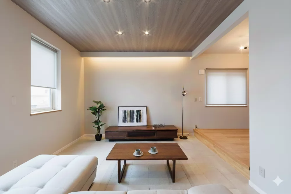 2階には、やわらかな間接照明に包まれた12帖のセカンドリビング。小上がりスペースも備え、読書やリラックスタイムなど、多彩な使い方が広がります。家族それぞれが思い思いに過ごせる空間です。