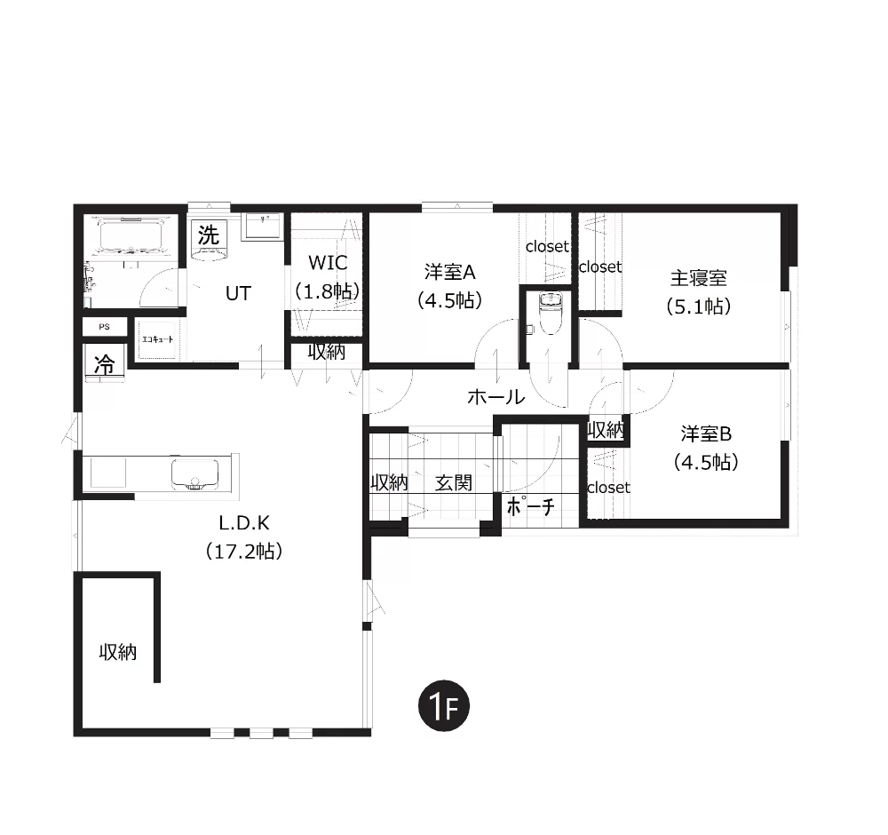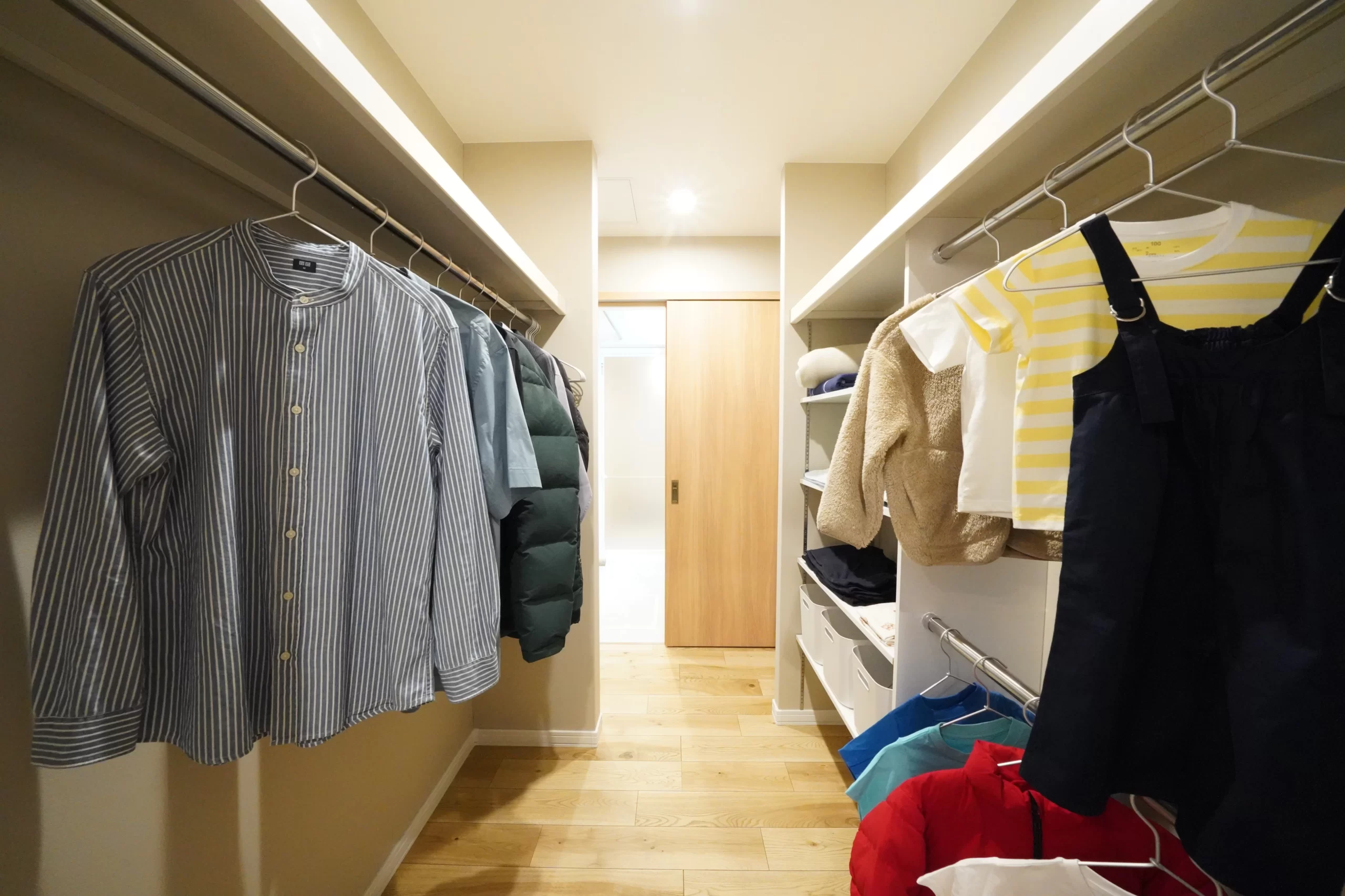 ユーティリティとつながるファミリークローゼットで、洗う・干す・畳むまでの家事がスムーズに。毎日の片付けもラクになり、家事効率がぐんとアップする便利な設計です。