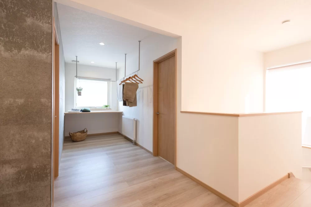 2階ホールにはゆとりがあるため、室内干しスペースやお子様の勉強、読書をするセカンドリビングなど、ご家族の暮らしや好みに合わせて自由に活用できます。