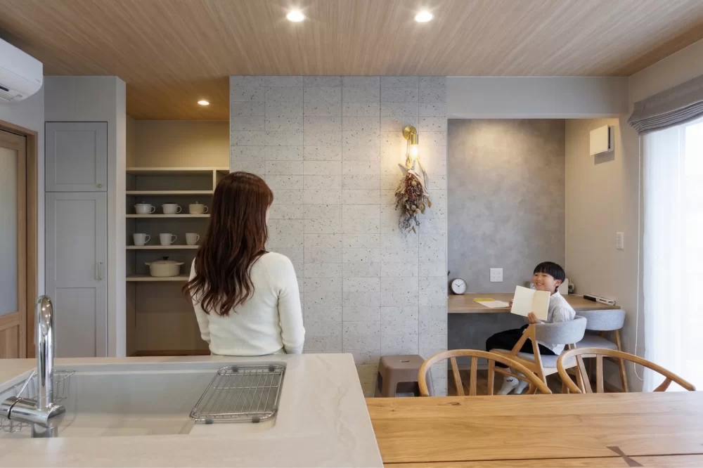 ダイニングまわりにはカウンタースペースと続きの洋室を設け、作業スペースやお子さまの遊び場、来客時の一室としても活用できます。