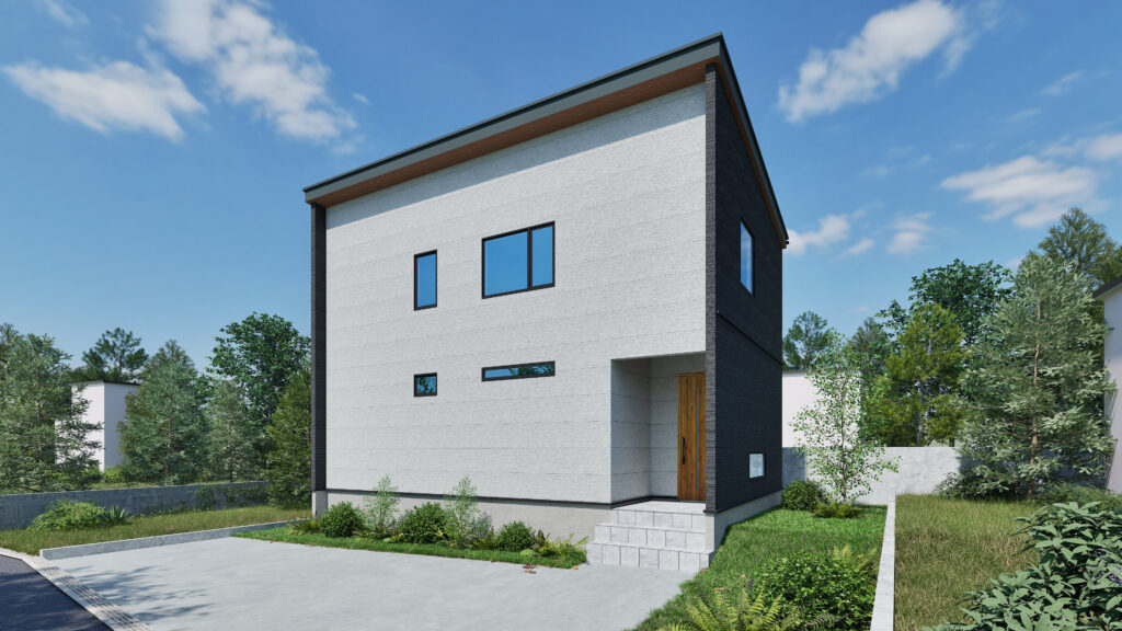 ブラック×ナチュラルホワイトで、洗練されたモダンな雰囲気に仕上げました。凹凸のある立体的なフォルムが、存在感のある外観を演出します。“かっこいい家に住みたい”という方はぜひ現地でご体感ください!