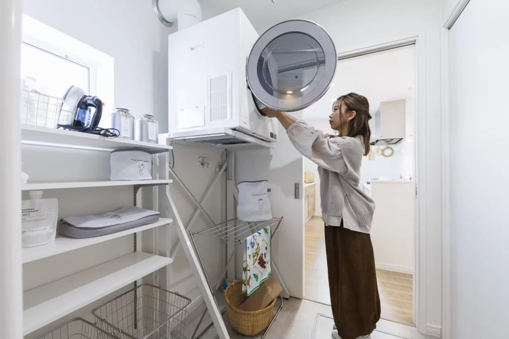 家事負担を軽減する機能性能を追求。太陽光発電をはじめ、ガス乾燥機「乾太くん」や食洗機などを備え、毎日の家事を効率化。忙しい日々にもゆとりをもたらす住まいです。