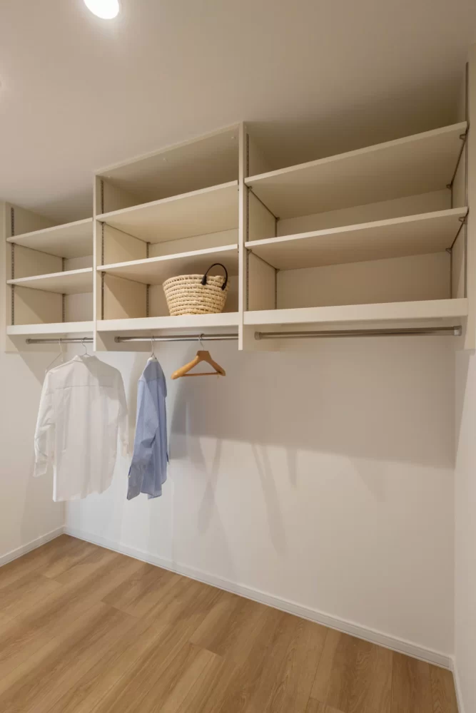 階段下収納や2階納戸、WICなど大容量の収納を確保。季節物の衣類やかさばりがちな季節家電もすっきり収まり、家全体をいつでもきれいに保てます。