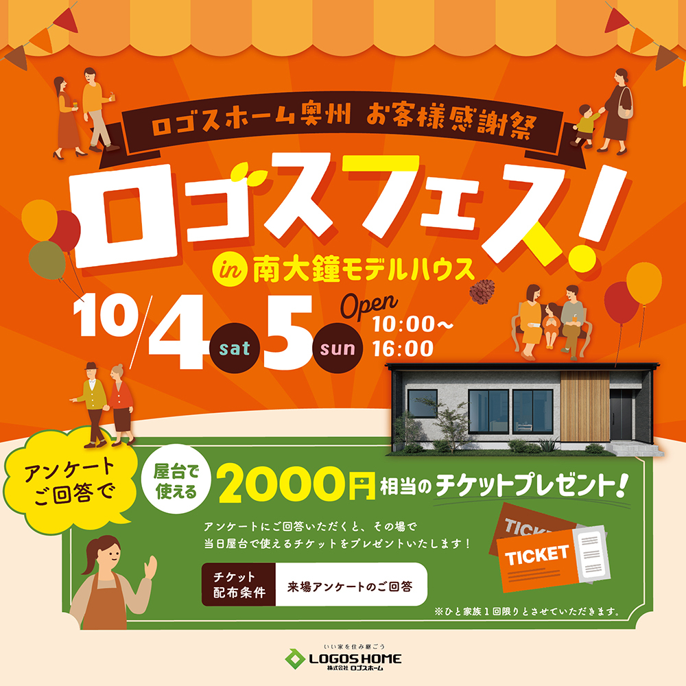 ◆ 本キャンペーンの参加はロゴスホーム、ハウジングカフェの過去のキャンペーンを含めて、ひと家族1回限りとさせていただきます。