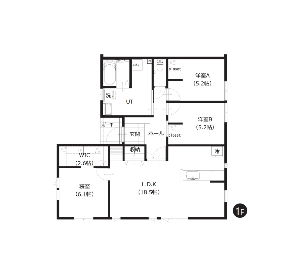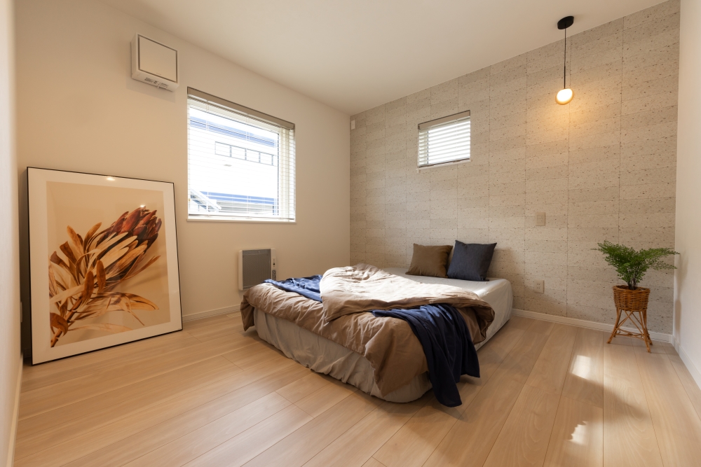 ウォークインクローゼット付きの主寝室は、リビングの隣に配置。ワンフロアでも主寝室と子ども部屋の距離感を程よく保つ間取りで、家族それぞれのプライベートも守れます。