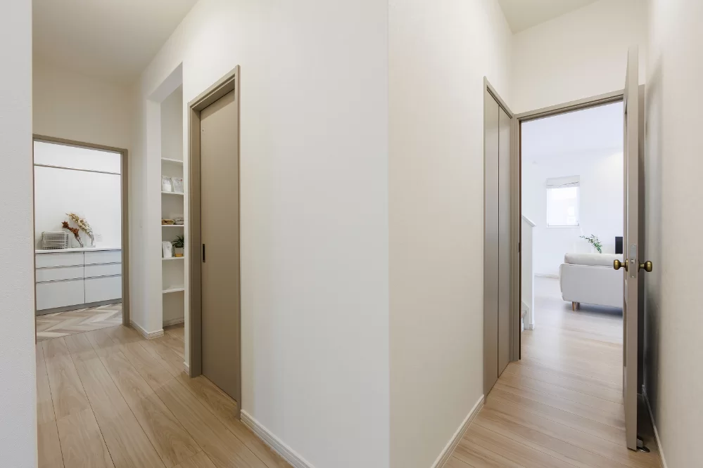 ユーティリティー、収納スペース、LDKをぐるっと回遊できる動線で、朝の身支度や家事の流れもスムーズ。毎日の暮らしを快適にする工夫が考えられた間取りです。