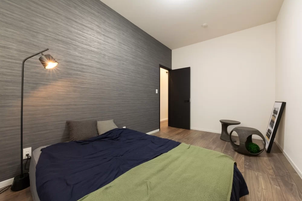 広さに余裕をもたせた寝室に、落ち着きのあるアクセントクロスをプラス。静かにくつろげる環境を整えました。大容量のウォークインクローゼットを備え、暮らしやすさにも配慮しています。