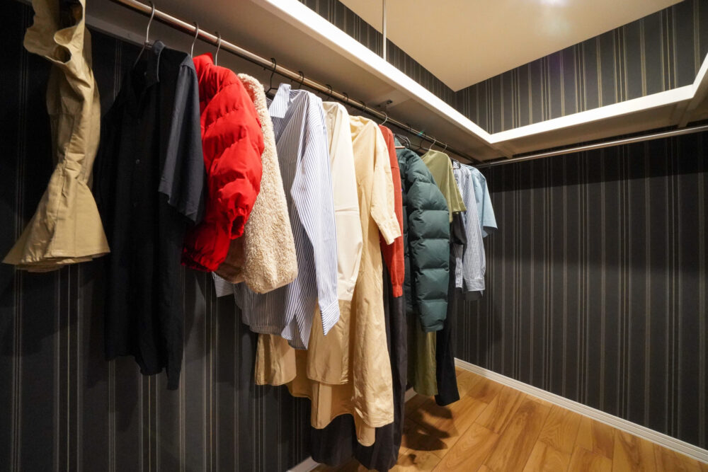 1階のファミリークローゼットはユーティリティーと洗面を経由してアクセスでき、洗濯から干す・しまうまで家事が1フロアで完結。毎日の暮らしがスムーズに整います。