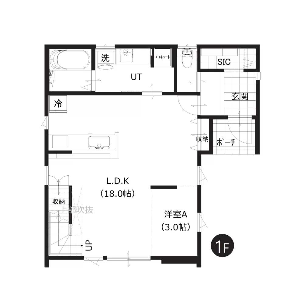 21帖のゆとりあるLDKに、鉄骨手摺の階段が映える開放的な空間。仕切りを設けない3帖の続き間が視線の抜けをつくり、さらに広がりを感じられます。