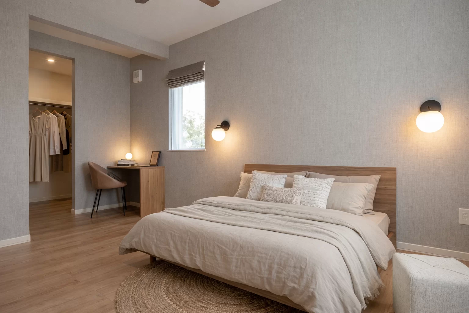 広々とした主寝室に、4帖のゆとりあるウォークインクローゼットを完備。枕棚とハンガーパイプを備え、衣類や家電などをたっぷり収納でき、家中をすっきり保てます。