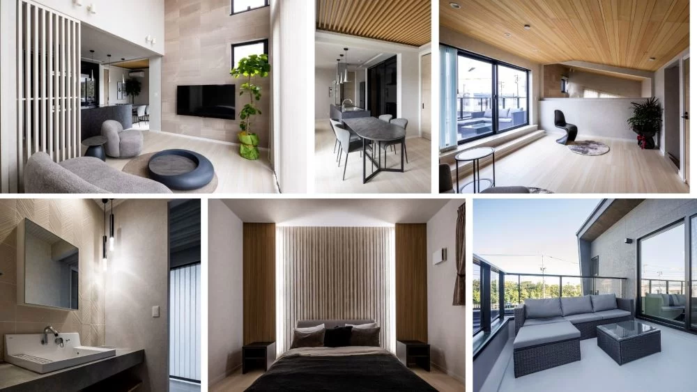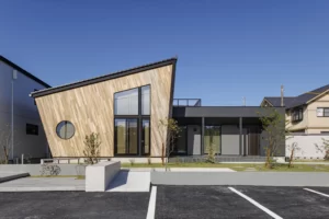 リビングとキッチンはスリット格子で緩やかに仕切られ、家族の気配を感じながら過ごせる心地よい設計に。1階は寝室・ウォークイン・ユーティリティが回遊動線でつながり、効率的で快適な暮らしを叶えます。
