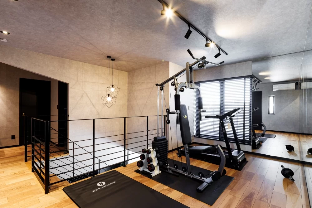 2階のホールには全面鏡張りのフィットネススペースを設置。家族で体を動かしたり、お子様とダンスの練習を楽しんだりと充実した時間を過ごせます。