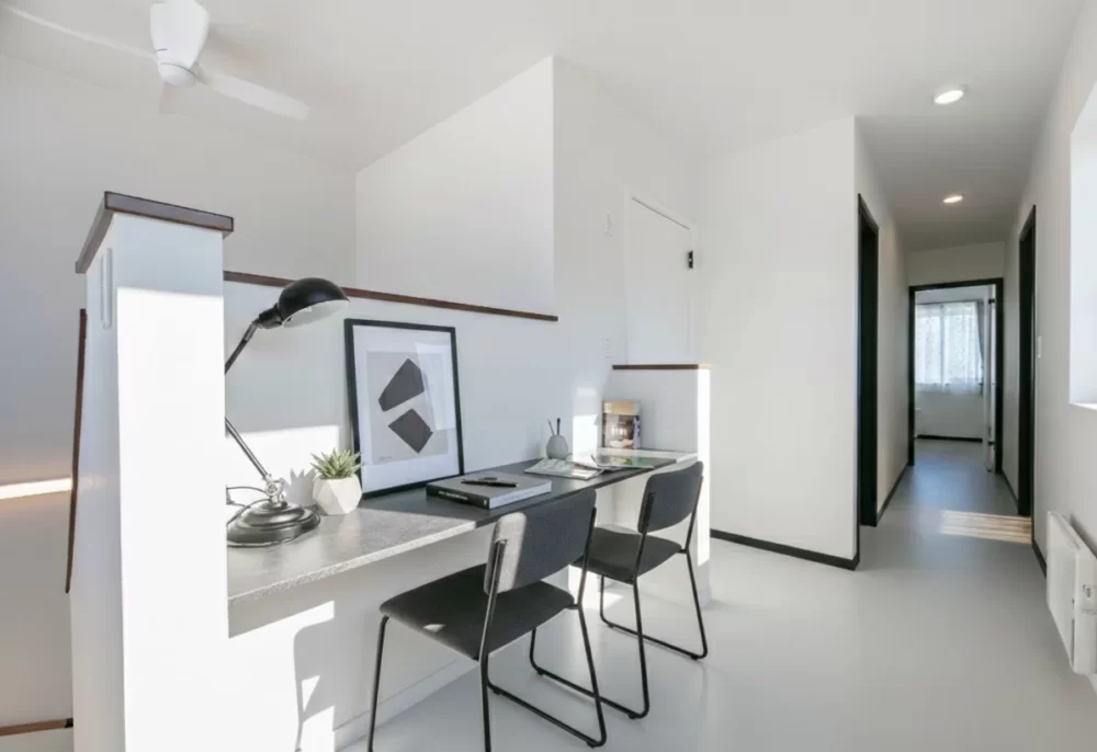 2階ホールにはカウンターを設置。リモートワークや趣味、読書などライフスタイルに合わせて自由に活用でき、家族それぞれの時間を心地よく彩ります。