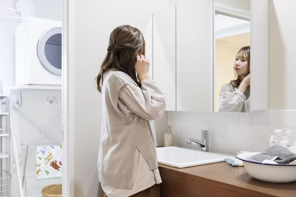 1階と2階にそれぞれ洗面台を設置。朝の混み合う時間も各階で身支度ができ、家族みんながスムーズに準備できます。手洗いやうがいにも便利で、毎日の暮らしを快適にします。