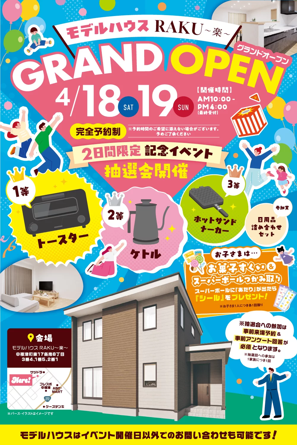 モデルハウス「楽(RAKU)」のGRAND OPENを記念して、