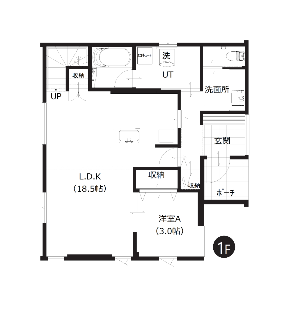リビングはナチュラルカラーでどんなインテリアにも馴染み、壁掛けテレビでより広く感じられる設計。玄関からリビングとキッチンの両方へアクセスでき、買い物帰りの重たい荷物もスムーズに運べます。