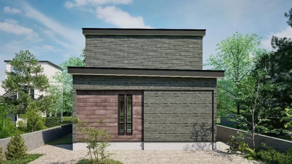 外壁は、グリーンカラーの木目調サイディングと、セメントならではの素朴な風合いを生かした「SOLIDO(茶錆)」を採用。味わい深く、唯一無二の外観に仕上げました。