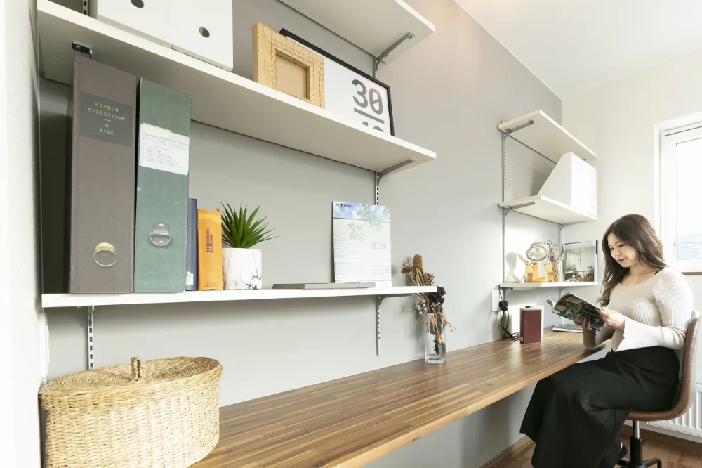 主寝室に設けた幅4mのカウンターは、2人並んでもゆったり過ごせる贅沢なスペース。奥様の化粧や就寝前の読書、趣味など、多彩に活用できます。