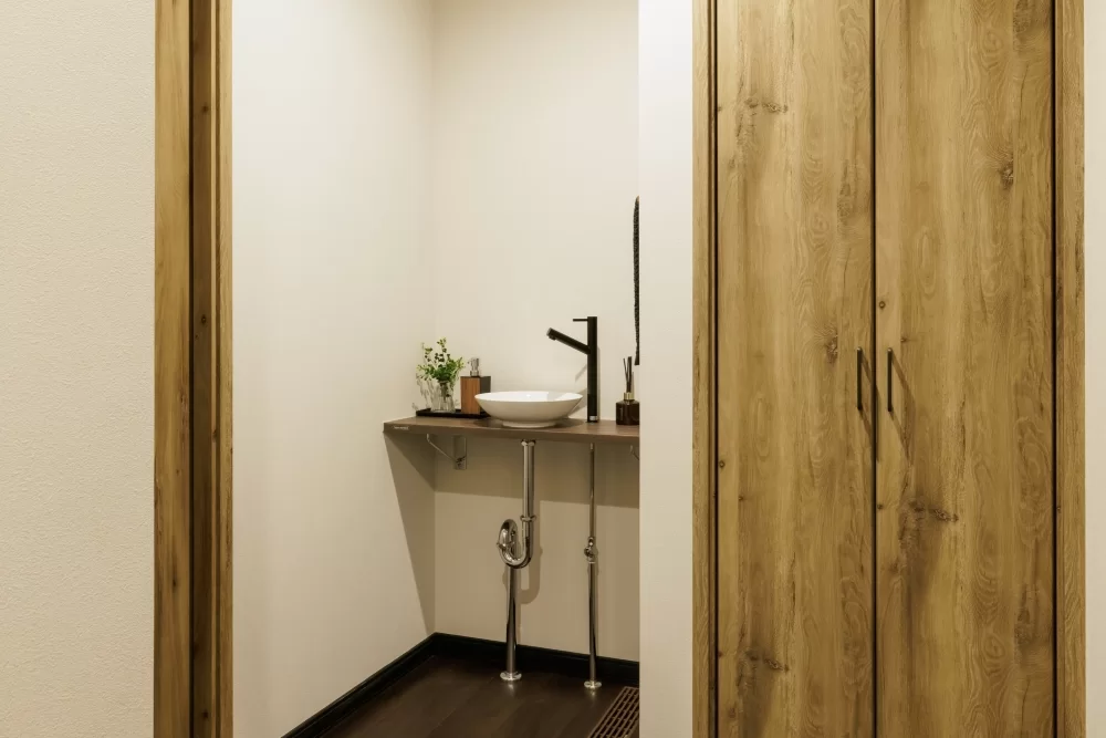 玄関を入ってすぐの場所に手洗いを設置。帰宅後すぐに手洗いでき、来客時にも便利です。ご家族の衛生習慣を自然にサポートし、暮らしやすさがアップします。