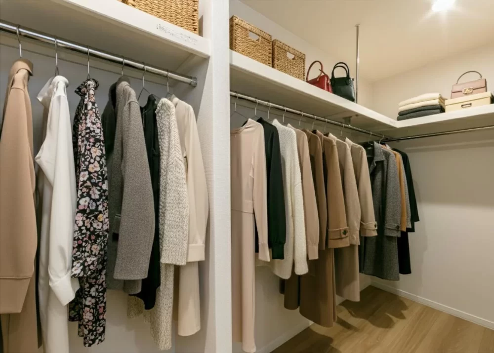 広々としたシューズクロークは、お子様の自転車やベビーカーも収納可能で、家族全員の靴や小物もすっきり整理できます。いつでも整った玄関周りを保てる、使い勝手抜群のスペースです。