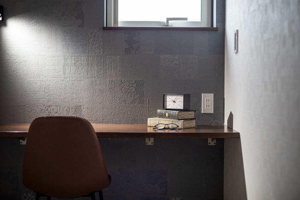 2階には、自分時間を楽しむための書斎スペースを設計。趣味はもちろん、在宅ワークや読書にも活用できるプライベート空間です。