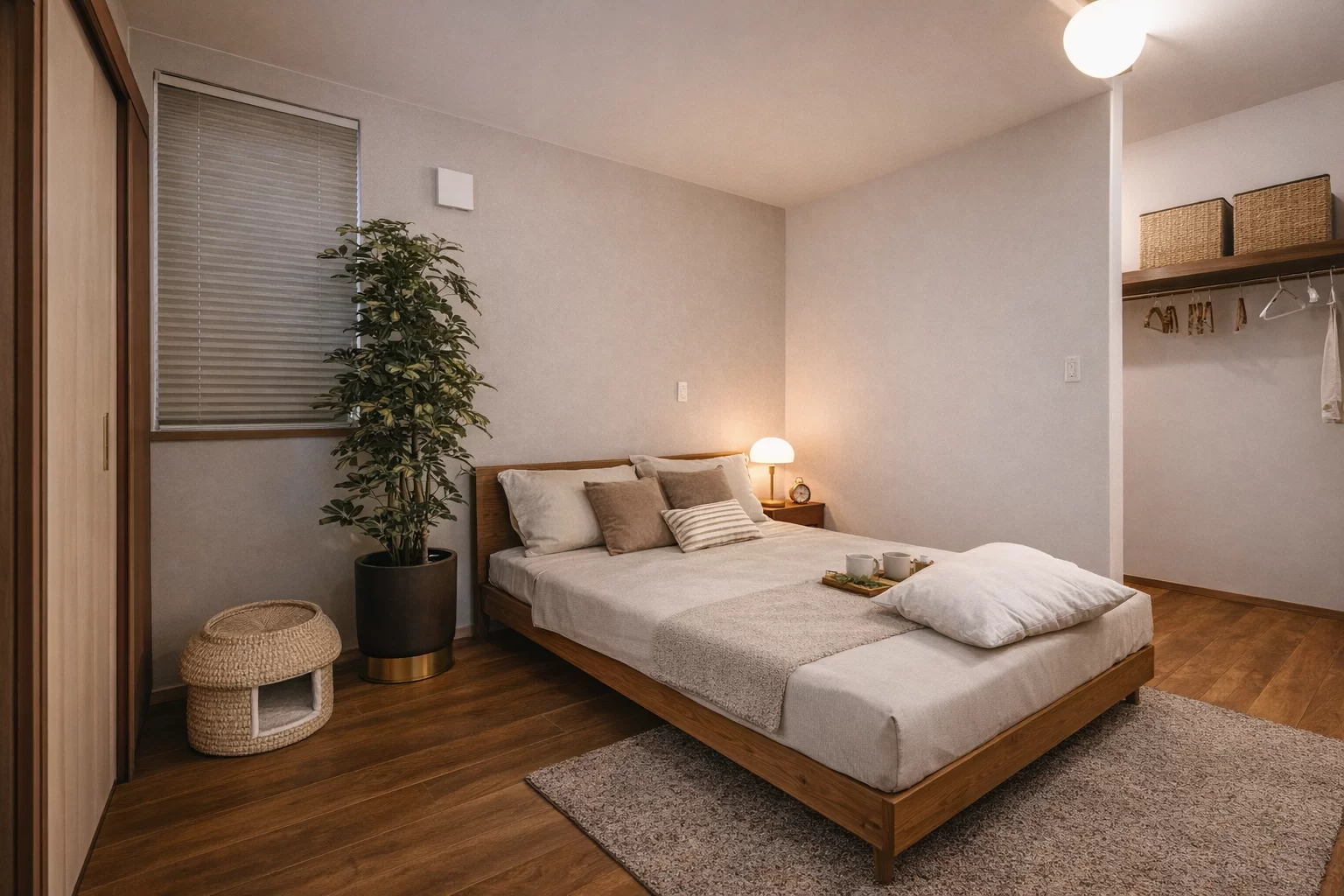 1階に主寝室とウォークインクローゼットを配置。将来的には平屋のように1階ですべての生活が完結でき、移動がスムーズで快適に暮らせます。