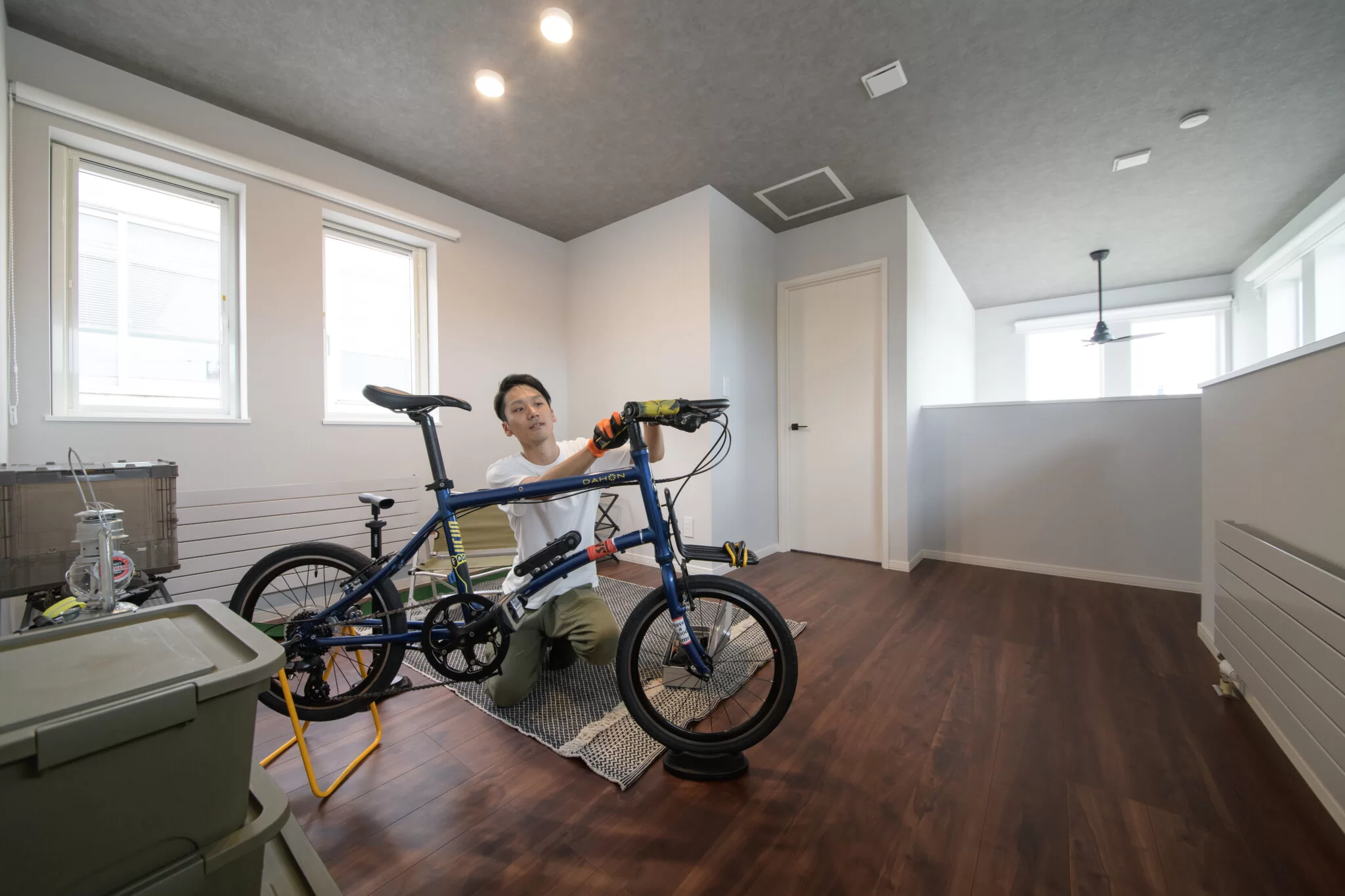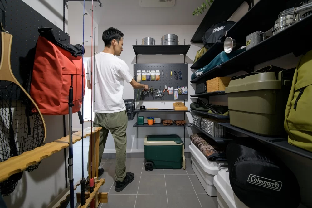 2階フリースペースは、趣味に熱中する方にぴったりの空間。道具や装備品が増えても、ここでスッキリ収納できます。