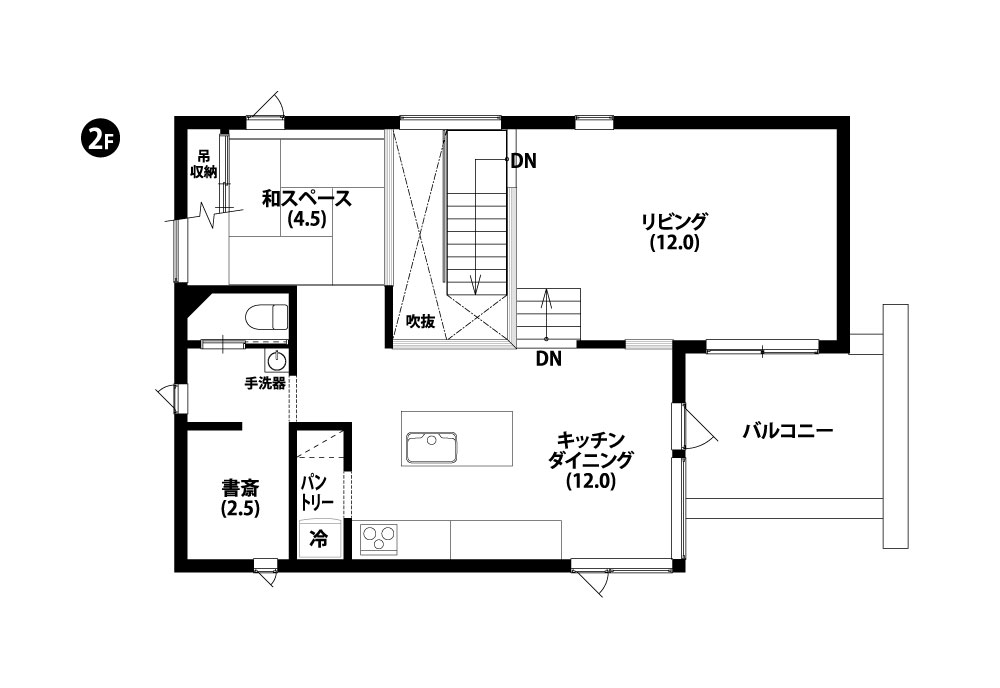 スキップフロアには、天井が高く開放的なリビング空間。ダイニングキッチンと別空間のようになるため、気兼ねなく床に座ってくつろげます。バルコニーと隣接しているため、外からの光を取り入れ開放感がアップ。
